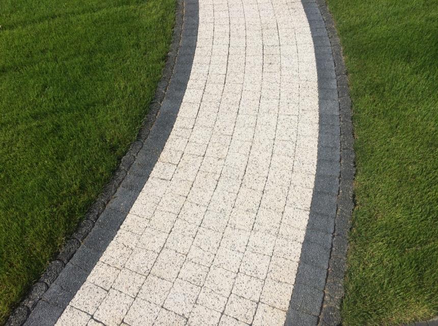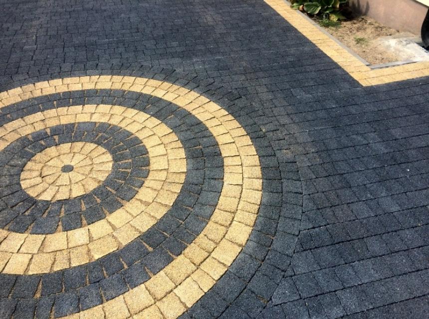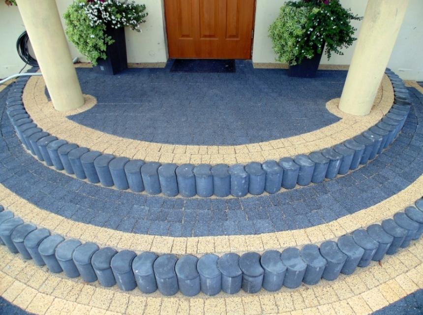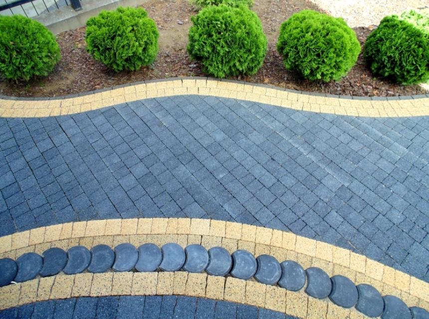 Doskonale nadaje się do układania przydomowych chodniczków i tarasów. Można z niej komponować rozmaite łuki i fale.