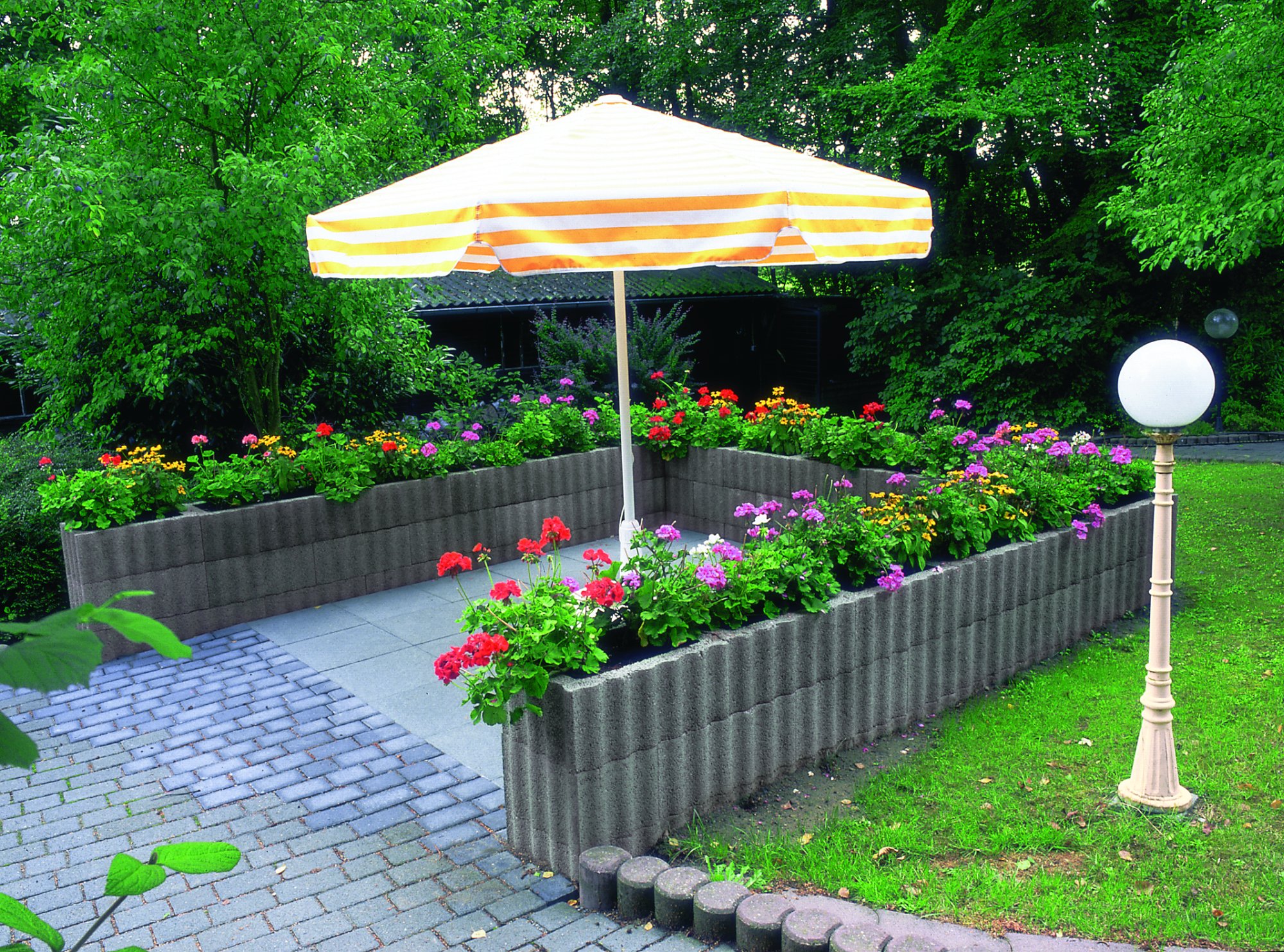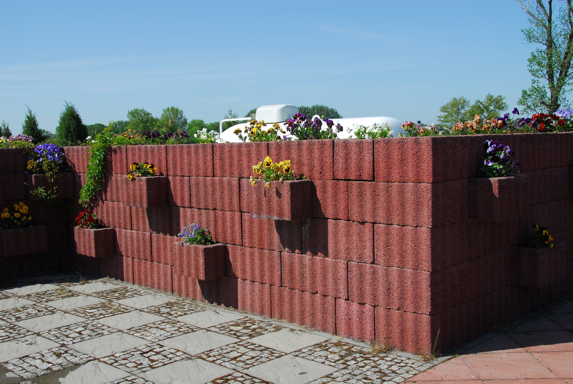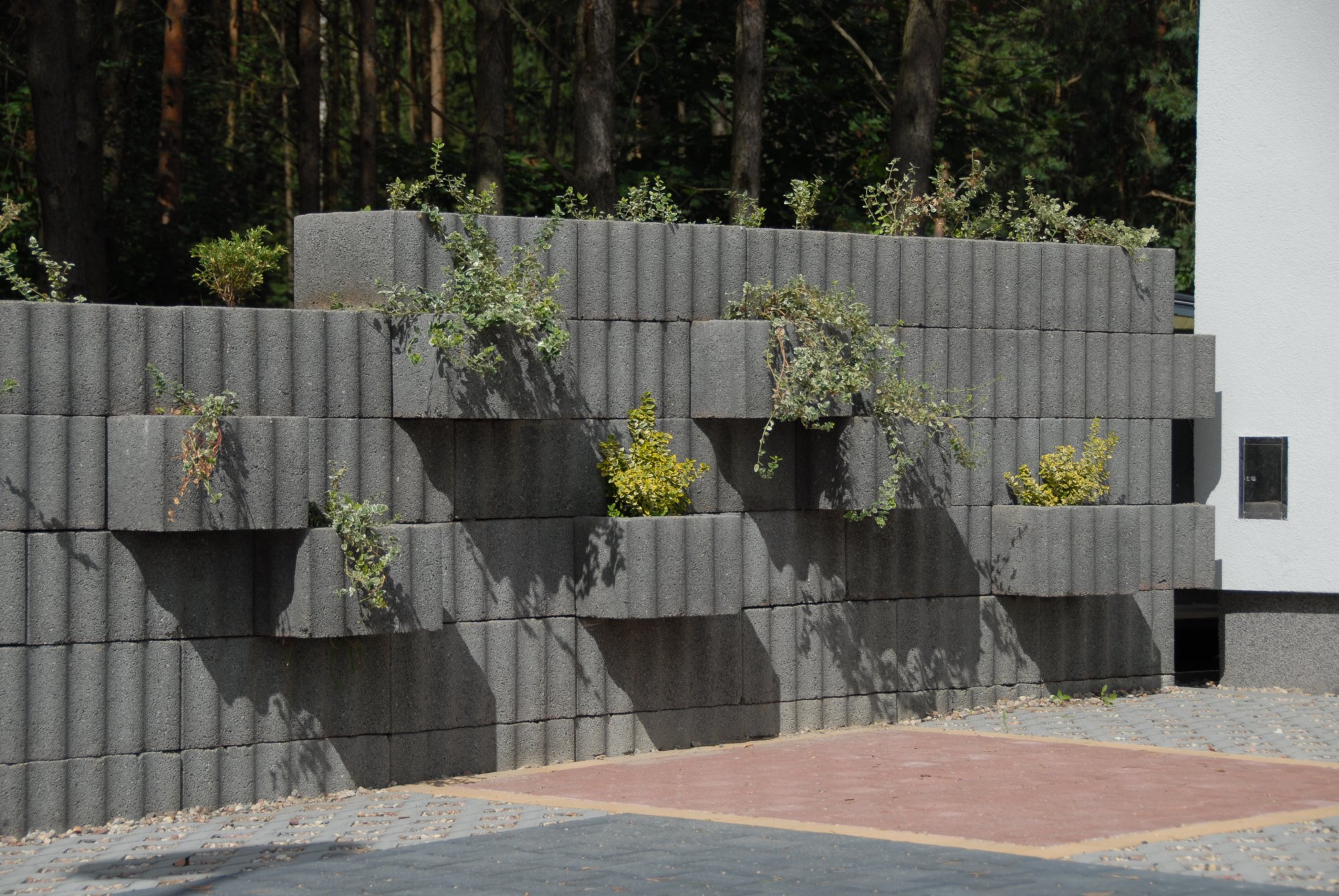 RELUFLOR to element ogrodzenia betonowego w kształcie prostokąta o sfalowanej powierzchni zewnętrznej. Dzięki takiej powierzchni kształtki dobrze zazębiają się tworząc bardzo stateczne konstrukcje. Ściany wykonane z tych elementów cechuje prostota formy i harmonia. Odwracając wybrane kształtki, tak że dłuższym bokiem będą ustawione prostopadle do ściany, otrzymamy w nich miejsce do zasadzenia roślin. W wystające części kształtek wstawiamy odpowiednie denka, zabezpieczające podłoże roślin przed wypłukaniem. Z elementów RELUFLOR możemy wykonać: umocnienie skarpy, mur ogrodzeniowy, mur oporowy, kwietnik itp.